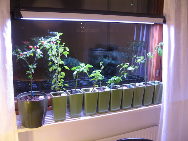 Olen pitkään taistellut valon riittämättömyyden kanssa. En ole vain löytänyt sopivaa ratkaisua, halpaa, tehokasta ja nättiä. Nyt sitten aikaisena joululahjana hankin talvehtiville chileilleni uuden lampun ja tein Fataliillle uuden siemen tilauksen. Ilokseni huomasin että Fasse myy nykyään myös jauhettua chiliä suoraan webbisivuillaan.