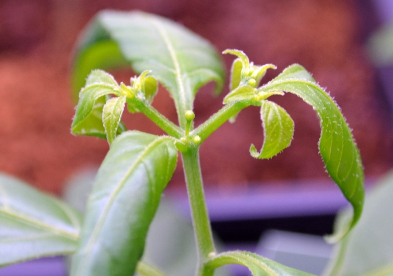 Capsicum galapagoense (Kolmesta omasta siemenestä 1 homehtui, yksi iti ja yksi on edelleen idätyksessä. Neljä siementä lähti itämään kasvattelijatoverilta saatuna)