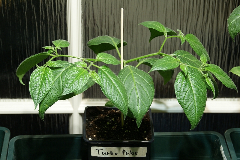 Manzanot Rojo ja Yellow on jääneet pieniksi. Rojolla joku hätä eikä ole ensimmäinen kerta, kun yksi rocoto näyttää tuolta. Yläpuolelta sitä luulisi ödeemaksi, mutta lehtien alapinnat on normaalin näköisiä. Luultavasti tuo korjaantuu jossain vaiheessa itsekseen niinkuin aiempina vuosina.