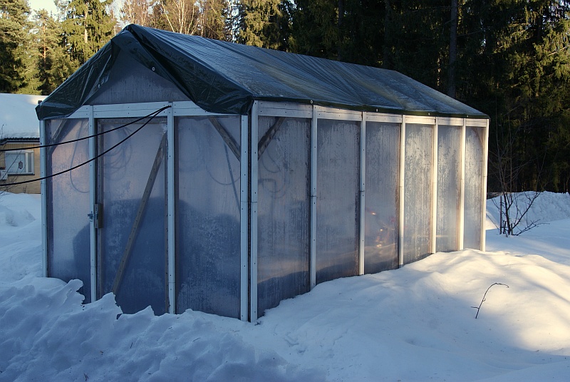 Tallissa sentään on kevät. Lämmönsäätö on vielä hakusessa: oli käynyt 12 asteessa ja maksimi oli vain 20. Kuva näyttää hyvin, että natikan valossakin saa normaalit värit, kun jaksaa säätää.