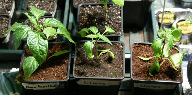 Serranoja lukuunottamatta taimet näyttää suht. hyvävointisilta, mutta kasvaa hitaasti. Suurin osa noista on ruukutettu vasta eilen, mutta tallissa olevat pari viikkoa sitten ruukutetut ei ole käytännössä juurikaan parempia. En tajua, mutta en ota kovin vakavastikaan. Vai luulenko vain että tuo on hidasta, kun tänä vuonna monilla on metrisiä kasveja tässä vaiheessa?