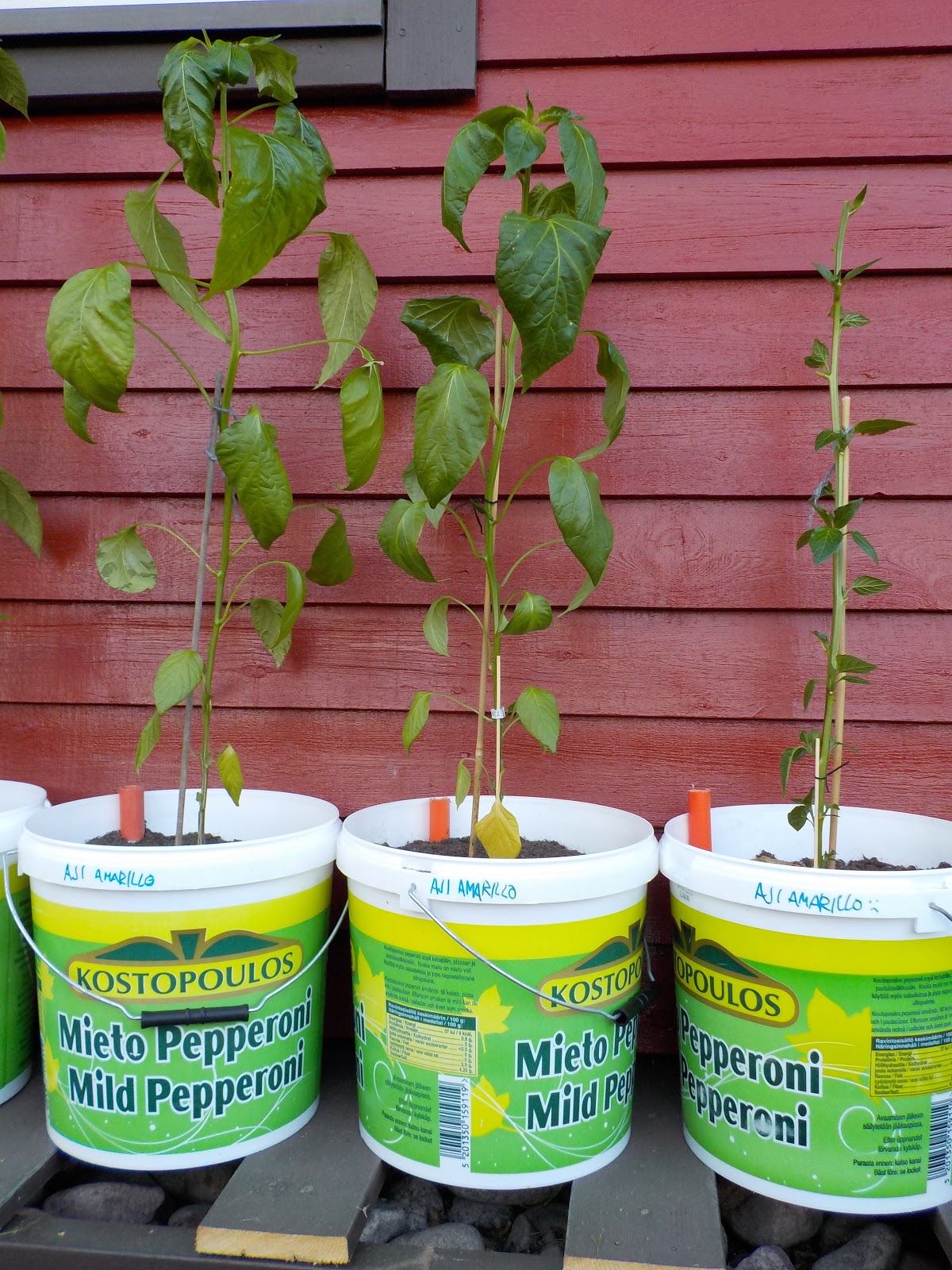 Poblano: Teki podeja sekä kasvihuoneessa että takapihalla, kasvihuoneessa todella kookkaitakin. Eivät meinaa vaan kypsyä. edit:ainoat kypsyneet olivat jo alkaneet mädäntyä sisältä.   Ei tod. jatkoon.