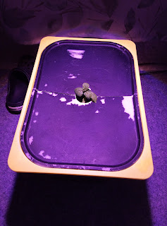Käsittämätöntä kyllä, vaikuttaa siltä että kasvarikausi on alkanut. Ulkona pakkasta oli kymmenisen astetta, tosin aamulla kahdeksan aikaan n. 7. Kuitenkin, yölämpötila kasvien tasalla oli 15 astetta. Tähän on syypää nestekaasukäyttöinen infrapunalämmitin ja pientä alalämpöä antava lämpömatto termarilla.