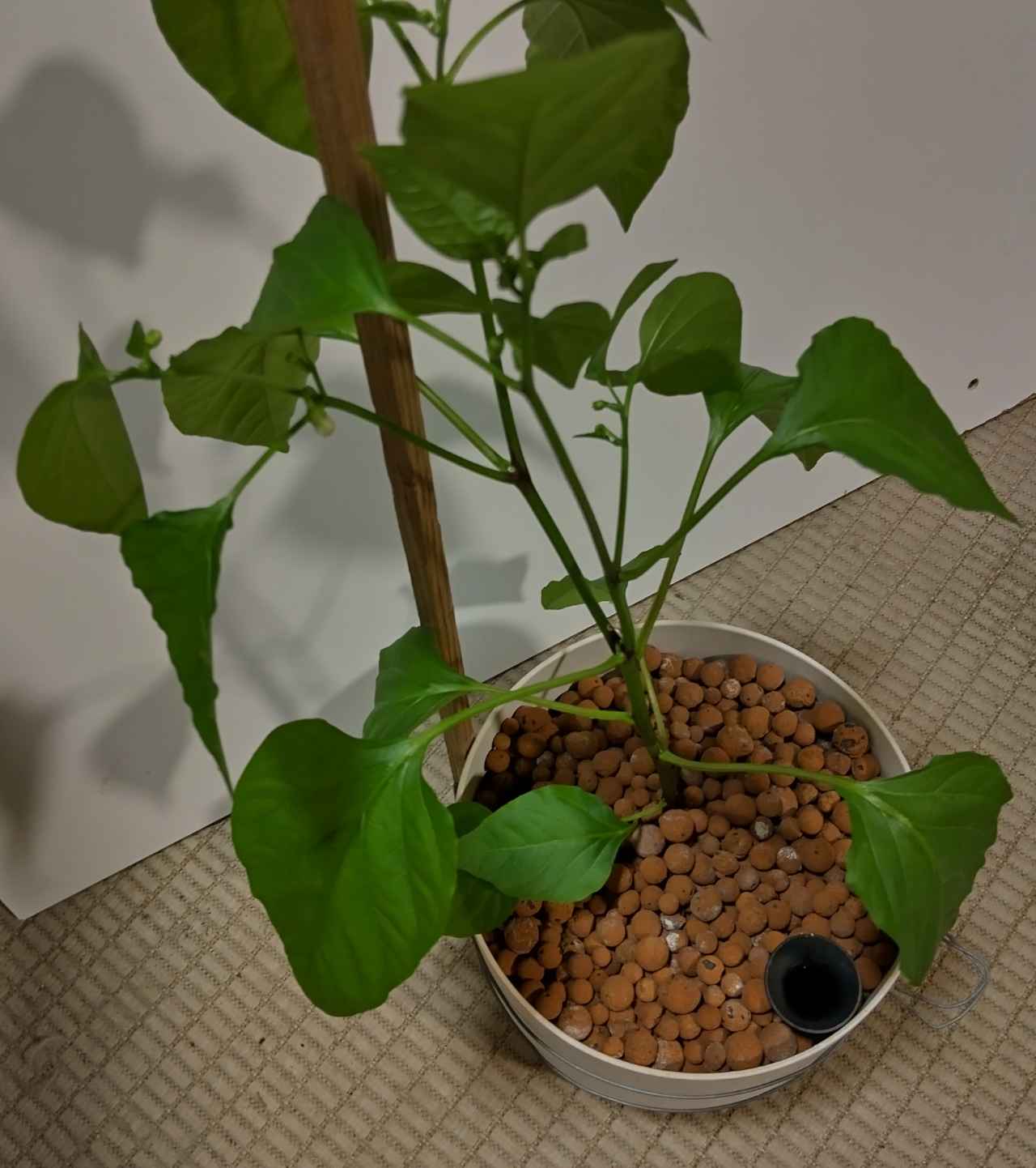 Kypsyi päätös jättää yksi kasvi sisään. Jos se vaikka säästyisi ötökkäinvaasiolta ja voisi pitää sen pidempäänkin syksyyn, miks ei jopa talven yli. Sitten tuli valinta, millainen tekniikka sitä kasvattaisi, päädyin passiivihydroon. Ei ehkä paras valinta, jos haluaa pidempään pitää kasvia, mutta kokeillaan ensi vuonna jotain muuta.