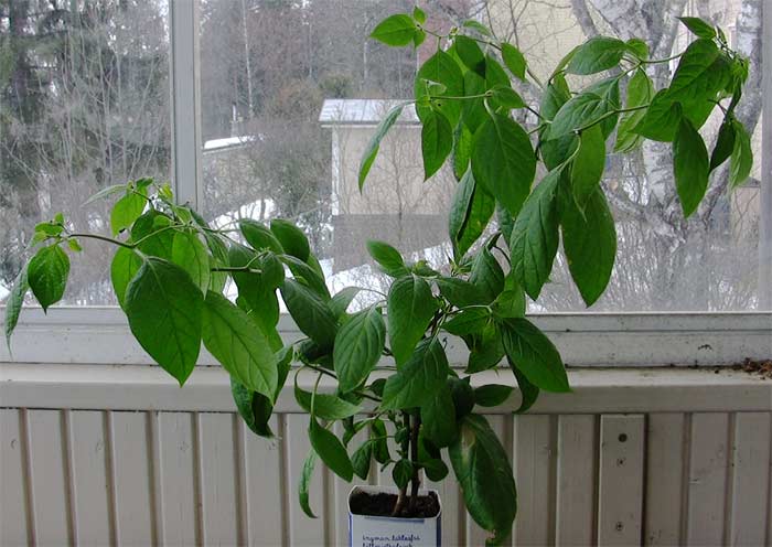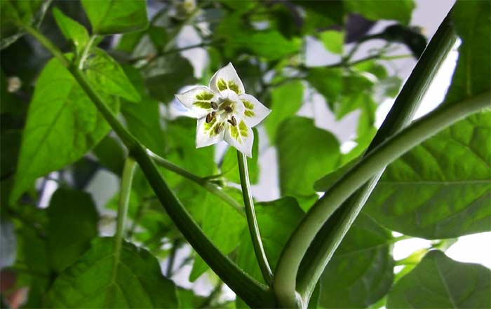 Tälle vuodelle onkin kerääntynyt noita epäselviä nimiä ja todennäköisiä rinnakkaisnimiä useampi kappale. perssa (= P e r u s s a) ei taida tuo nimeämiskäytäntö olla turhan tarkkaa. Joka tapauksessa tänään avasi kukkansa Kellu Uchu. Se on vuosisatoja vanha, Inkavaltakunnan aikainen, ketšuan kielinen nimi keltaisella baccatumille. Sitä on väitetty Aji Amarillon, Lemon Dropin ja muutaman muunkin varhaismuodoksi. Kun omat siemeneni kuitenkin ovat siemenkaupan valikoimista, saattaa kyseessä olla pelkkä rahastus muinaisella nimellä. Kun en ole noita nykymuotojakaan vielä kasvatellut, vertailu on vähän vaikeaa. Tämä on kuitenkin varsin hyväkasvuinen rotevaoksainen baccatum, jolla on ainakin aluksi isot lehdet. Helmikuussa jo katkoin siitä puolet pois, kun se oli kasvanut aivan likaa pituutta ikkunalaudalleni. Nyt se  on taas puolimetrinen.  Viikon päästä se on jo kolmen kuukauden, joten oli kai aikakin kukkia.