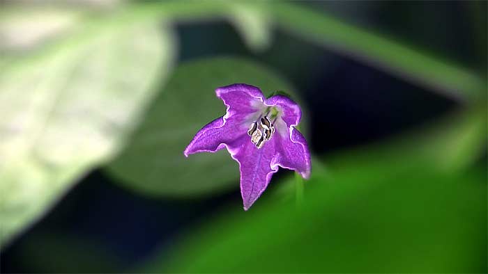 Kukka on vielä Kellu Uchuakin pienempi, vain 13 mm. Tyypillinen baccatum kuitenkin. Kasvi on tuuheahko pensas, vain 35 cm korkea ja aika leveä, jos oksat päästää vapaaksi. Nyt joudun tunkemaan niitä toisten väliin. Jospa sitten parvekkeella löytyisi elintilaa. Olen nähnyt Omnicolorista sellaisia kuvia, missä pensas on paljon leveämpi kuin korkea. Sellainen sopisi amppeliin roikkumaan. Tästä pitäisi foorumilla olla monellakin kokemusta, niin usein sen näkee kylvettyjen luettelossa. Vai onko pitkä idätysaika karkottanut kasvattelijat?
