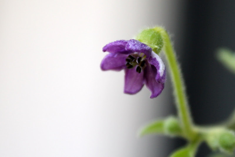 Keittiöstä löytyy myös ainoa hyvin voiva lihis, eli yökönlehti, joka pukkaa jatkuvasti uutta lehteä. Sen kaverina oli 5kpl Pink Habaneroja, jotka toki kaikki itivät, mutta silloisesta huonosta valotilanteesta johtuen, niistä on vain kaksi jäljellä. Ajatuksena on kietoa ne toisiinsa ja saada niistä hieno bonsai aikaiseksi jossain vaiheessa.