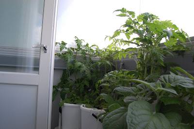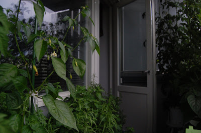 Nyt chilit tuottavat palkoja ja tomaatit ovat villiintyneet. Kaveri kommentoi parvekettani viidakoksi. Vesiviljely se on mikä kannattaa ;)