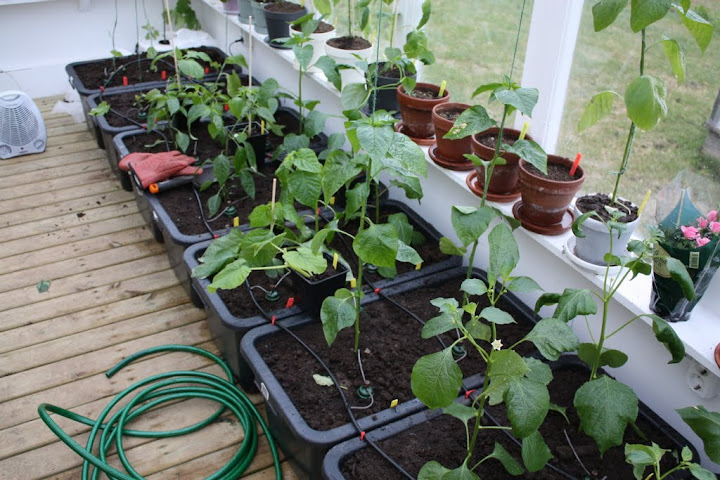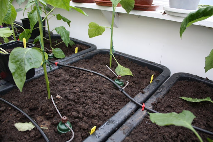 Tippukastelujärjestelmää rakennellessa menikin mukavasti muutama tunti. Sain tehtyä sen tuolle chili puolelle ja tomaatti puolelle on vielä laittamatta. Vähän on sellaiset kilin tunteet jättää paineet noihin letkuihin heti kun lähden huomenna työmatkalle kolmeksi päivää mutta toivotaan ettei letkut räjähtele irti liitoksistaan. Meillä kun tuo verkoston paine on aika lähellä 8 bar. No ettei mene pelkäksi lätinäksi niin laitetaan vähän kuvia aikaansaannoksista.