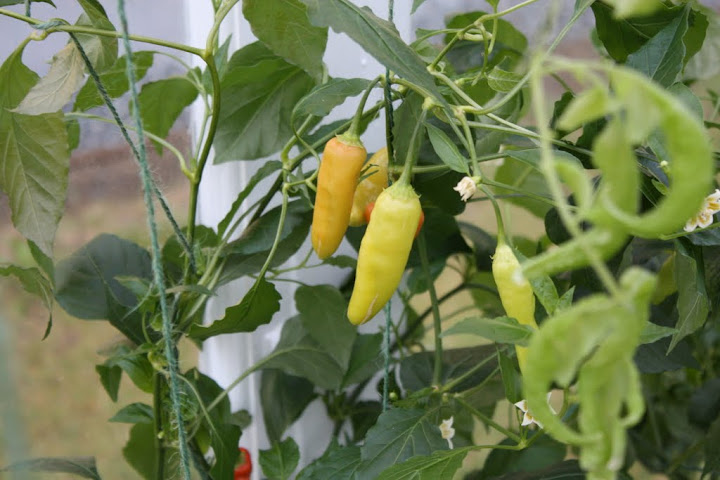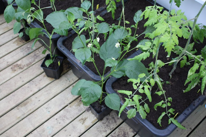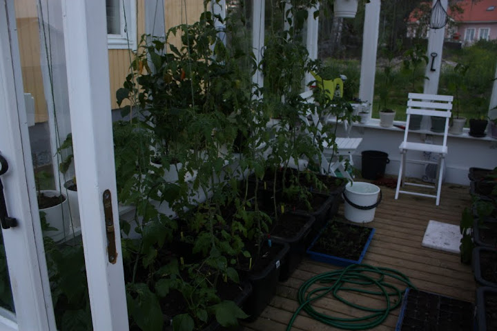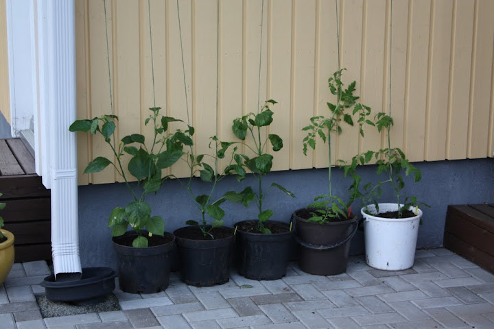 Ulkoistin kolme Aji Cristalia ja pari tomaattia räystään alle.
