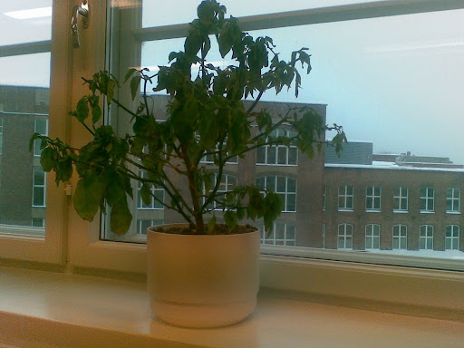 Työmaalla kasvaa ikkunalaudalla Haba, joka on olosuhteet huomioon ottaen(valo ja kastelu) erittäin hyvissä voimissa. Olen antanut sille pelkkää vettä koska töihin tuomani Puutarhan kesä on jämähtänyt salsa purkin pohjaan. Viime perjantaina kuitenkin totesin Pauliinan tikun olevan aivan kuiva ja ajattelin kastella ne viikonloppua vasten. Liuotin PK:n veteen ja laitoin kastelukannulliseen sellaisen normaalin määrän mitä olen käyttänyt kesällä. Välittömästi tämän jälkeen lehdet alkoivat roikkua ja siinä ne ovat samassa asennossa kuin viime perjantaina. Mahtoikohan haba saada överit? Toinen mikä tuli mieleeni, että ei ehkä olisi pitänyt kastella vaan antaa vielä olla että ehtii kuivaa kunnolla.