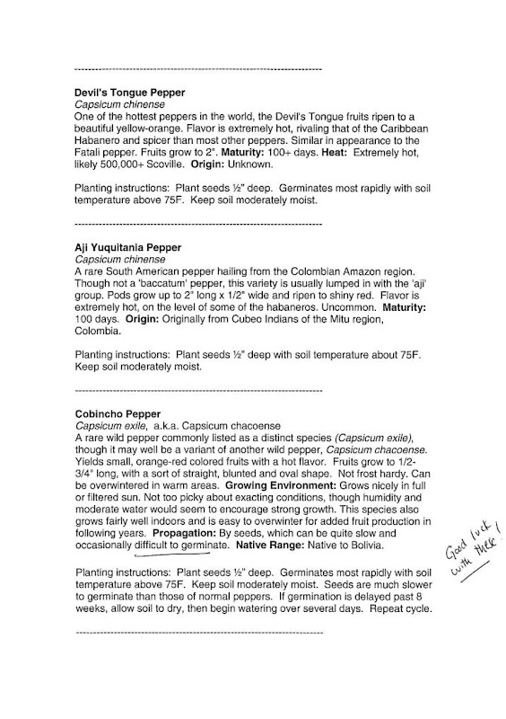 Sain työkaveriltani Tanskasta chilin siemeniä, joista jotkin näyttävät kovinkin tutuilta mutta parista ei oikein ole tietoa (kun en ole vielä Googlannut). Toisaalta olen meidän firman kavereille vienyt siemeniä Tanskaan, Britteihin ja Amerikkaan.