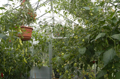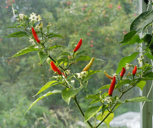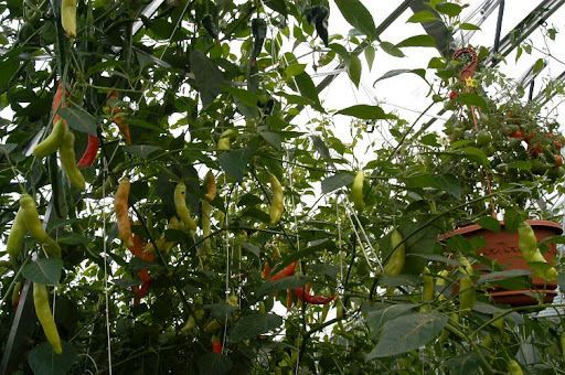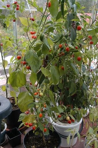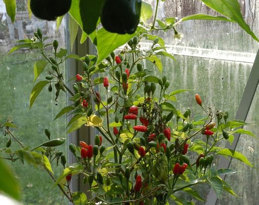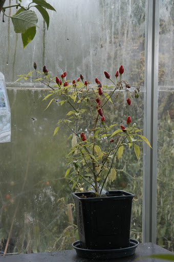 Ulkokasvatuksessa olevat ovat harson alla vielä hengissä, täytyy poimia viimeiset rocotot kukkapenkistä. Kasvarissa on puolentusinaa kypsyttelemässä podejaan.