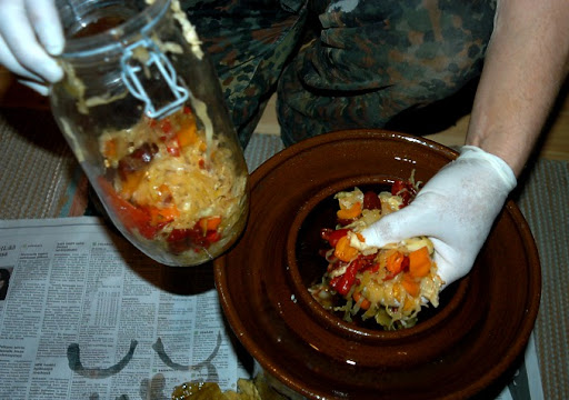 Samalla tavalla kuin hapankaali tehdään, lisätään vaan chilin osuus suureksi.