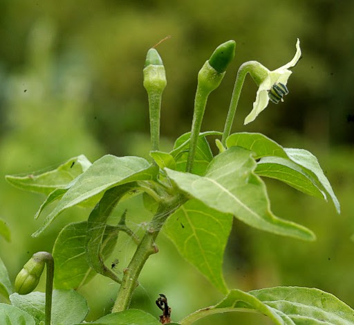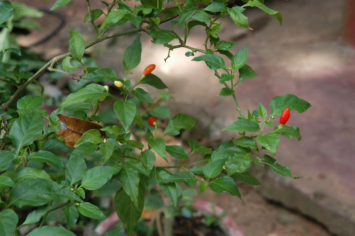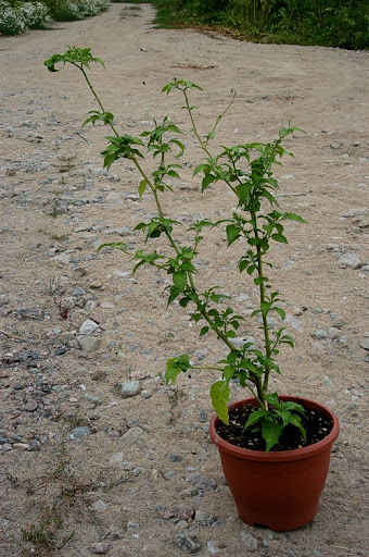 Olis itseäni lähinnä kiinnostava tunnistustehtävä; toin 2/2009 Sri Lankasta parin chilin siemeniä, toinen oli selvästi C.chinense mutta tämä toinen on nyt vasta toisena vuonnaan alkanut kukkia ja pukata pieniä podeja. Voisiko olla C.frutescens?
