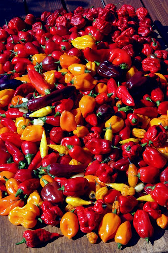 Kyllä ilo oli kokonaan minun puolellani. Hienoa, että pääsit käymään täällä sushrajan chilitilalla, harmi vaan kun joudut tulemaan vähän kaaoksen keskelle. Helteet ovat jo vieneet suurimman innon siivota.  :D Pienethän ja vaatimattomat olivat tuliaiset, verrattuna mitä bluesman tänne toi. Kassisotalla oli chiliä, joista suurinosa oli Congoa. Täytyy sanoa, että hieno on hedelmä ja tulee mielettömän hyvä salsakastike. Minä perkasin melkein pussillisen Congoa ja suristelin ne silpuksi ja laittelin mausteet ja tökötit sekaan, hyvää on!  :P Kymmenkunta pistelin peratessa huiviin ja täytyy sanoa, että potkuakin rupesi löytymään ja hiton hyvä ummetuslääke jo tuollaisenaan.  ;D Lajikkeita olisi taas toistakymmentä lisää, kun ottaa noista tuliaisista siemenet talteen. Toivottavasti saat Serranon kasvamaan, itse pidän todella sen mausta, sillä on sopivan makea ja tulisuutta silleen, että pystyy syömään, vaikka suoraan puskasta. Tuottoisakin on, kun saa vain kunnolla kukkimaan ja laittaa tarpeeksi isoon ruukkuun jo heti kasvamaan. Itsellä tuli se virhe tehtyä, ettei ollut ruukku tarpeeksi iso, niin loppui kukkiminen viiden podin jälkeen kokonaan. Aijuu, noita skorppareita olen vielä uteliaana tuijottanut ja täytyy sanoa, että hieman hilpeyttäkin saanut aikaiseksi, kyllä ne huiviin menee, mutta missä muodossa, niin on vielä kysymysmerkki(?) Pitäisiköhän ottaa mukaan joku tuonne Ilovaari-rockiin ja antaa pienet maistiaiset työkavereille. Voi olla, ettei olisi töihin enää asiaa sen koommin. Pidemmittä puheitta, pidetään yhteyksiä ja palataan asiaan taas tuonnempana ja tosiaan jossain vaiheessa kesää pitää tulla vielä käymään Mestarin näytteitä ihastelemaan. ;)