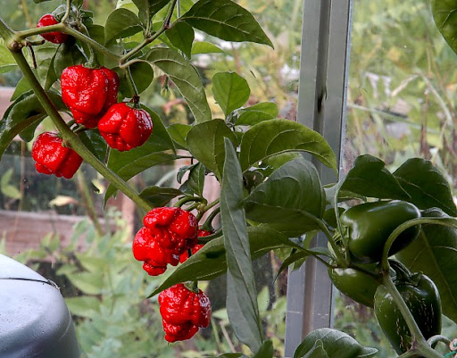 Caribbean red habanerokin vielä löytyy vaikka yksi meni nurin ja paloiksi.        Samoin 7pot.                            Limo
