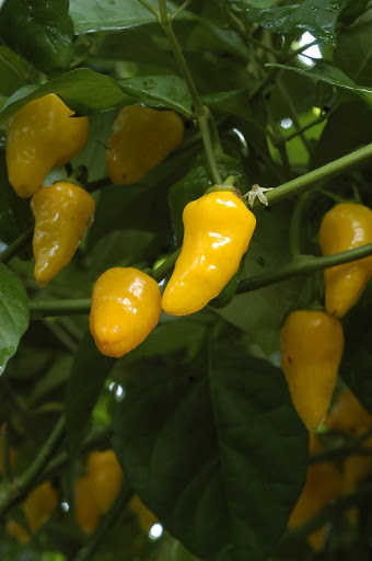 Peito de moca                                                                                   Yellow pointed habanero, pakko kohta silputa lisää. On pahasti valon edessä.
