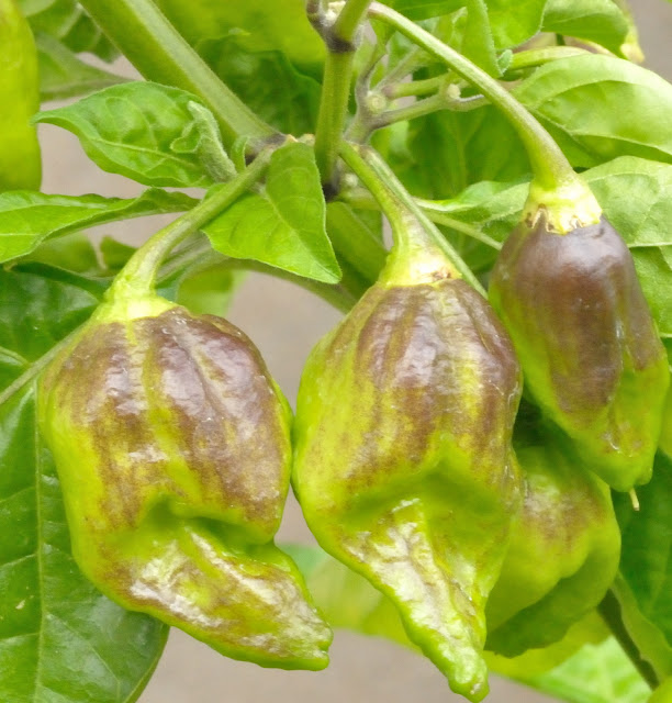 Mulla Naga oli itseasiassa toiseksi hitain chinenseistä tänä vuonna. Ainoastaan Pink Habanero oli hitaampi. Nagassa on nyt kymmenisen n. 3cm raakiletta. Eivät varmasti ehdi kypsyä...   :-\