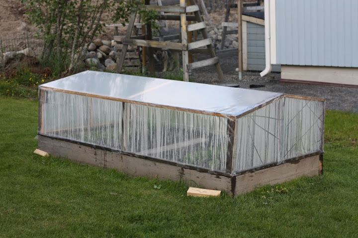 Puolessa tunnissa rimasta ja rakennusmuovista rakennettu kasvilava: