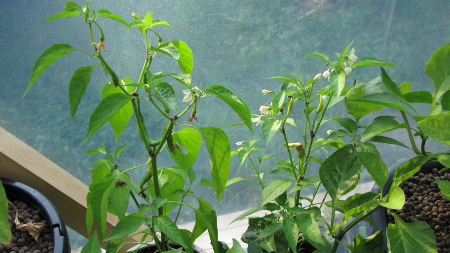 Tuli tehtyä kastelussa pieni laskelmointivirhe, sillä oli nesteet jäänyt kellumaan aluslautaselle ja pientä tuoksahdusta oli ilmassa, kun kaadoin nesteet pois. Toivottavasti ei pahasti saaneet osa kasveista siipeensä. Nyt pitää vähän maltillisempi olla noiden rehujen ja innon suhteen, ettei käy kalpaten ja jää sato korjaamatta tänävuonna. Saa olla reilu tauko kastelussa, vasta sitten, kun oikeasti sitä rupeavat ilmaisemaan. Pari raetta myös viskasin kananpaskaa Habanerolle, että saisi taas kunnon väriä lehtiin. Voihan se olla, että kukkia tulee putoamaan, mutta onhan tässä vielä vuotta jäljellä ja jatketaan tarvittaessa syksyä sisätiloissa. Millä myrkyllä muuten kannattaa kasvit käsitellä, ennenkuin tuo niitä sisään, tai edes osaa niistä?