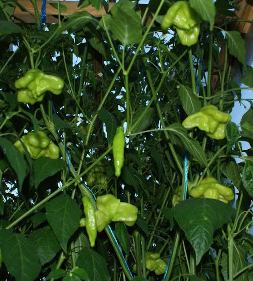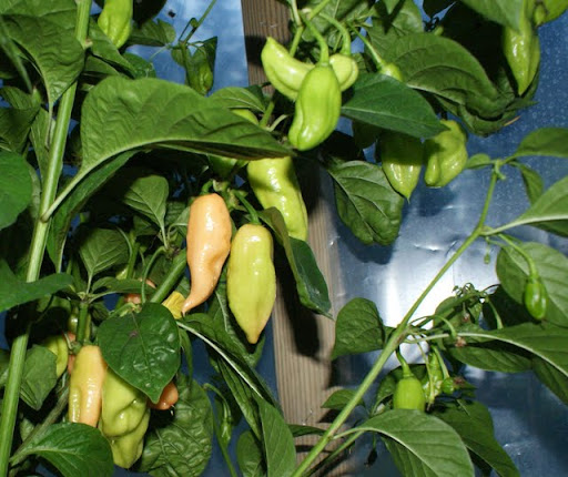 Muuten kasvuu jatkuu hyvin. Pink habassa on pari puolittain väriä vaihtanutta podia joten kohta pääsee maistelemaan. Aji cristalit kypsyttää useita podeja, mutta lemon dropin podeissa ei näy vielä värinmuutosta. Ebbikasveissa ja nuoremmissa multakasveissa alkaa myös olla kymmenittäin raakileita, joten niistäkin luulisi ehtivän saamaan kohtuullisen sadon. Yläperspektiivistä katsottuna ei ole epäilystä, missä ebbit on. :)