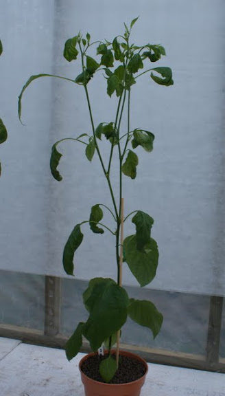 Omat taimet on ihan rääpäleitä, kuvassa alla muutama rehu viikko sitten (taustalla tomaatti). Onneksi on neljä kasvia kalat69:ltä ja niistä isoin (Lemon Drop) on jo yli metrinen. Omista osa tulee ebbiin, joten ehkä kasvarissa voi vielä niistäkin saada jotain aikaan. Onhan tässä kasvukautta jäjellä ainakin 4,5 kuukautta ja tuurilla enemmänkin.
