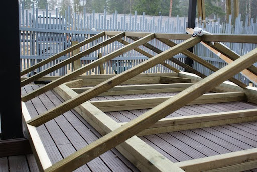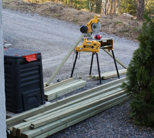 Tuossa on valmiiksi tullessaan reilut 500 ruuvia, joten luulisi pysyvän kasassa. ;D Puuta meni muistaakseni 130 m plus rimat, jotka tehtiin kakkosnelosta halkomalla. Hinta oli järkyttävä kun kaikki tarvikkeet piti ostaa, mutta tulipahan kerralla kunnollinen.