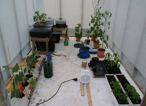 Tarkoitus on rakentaa tämän kuun loppupuolella 8-10 neliön kasvihuone ja kasvattaa kesä siellä. Siihen asti taimet on luoteispuoleisen erkkeri-ikkunan edessä eli hyvässä valossa aamun ja aamupäivän. Suurin osa ellei kaikki kasvit tulee multaan/turpeeseen, mutta foorumia lueskella ebb/flood on alkanut myös kiinnostaa. Ajattelin, että siinä voisi kokeilla muutamaa omista taimista, jos ebbillä saisi korvattua myöhäisyyttä.