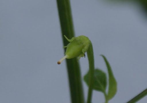 Nuput olen nyppinyt, koska en halua kasvien tekevän vielä satoa vaan kasvavan. Saattaisi ne toki itsestäänkin tippua, mutta se ainokainen kukaksi asti päässyt teki podin alun, joten kuvittelin, että muutkin tekisi. Ajattelin nyt ihan kokeilun vuoksi jättää toisen aji cristalin rauhaan ja jatkaa toisesta nyppimistä.