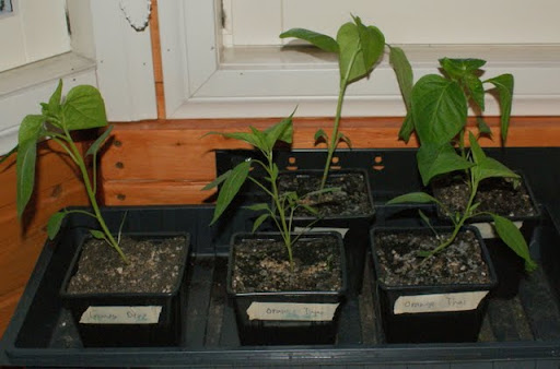 Hankin vasta maaliskuun alupuolella siemeniä ja laitoin itämään. Lajikkeina Lemon Drop, Aji Cristal, Peri Peri, Heart Throb ja Orange Thai. Noista Ajia Cristalia ja Heart Throbia en saanut itämään ja muistakin on tulossa vain pari taimea. Taimista muutama on juuri nousseita ja muutkin vasta aloittaa toisen lehtiparin kasvatusta. Siitä ensimmäinen kysymys eli olenko liian myöhässä? Onneksi saan hankittua omien lisäksi muutaman valmiiksi kasvatetun taimen ensi viikolla.