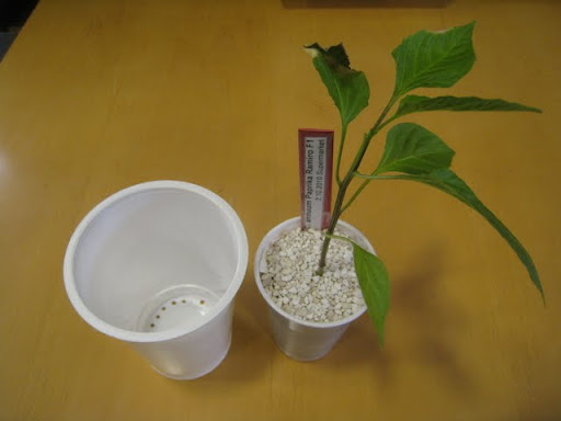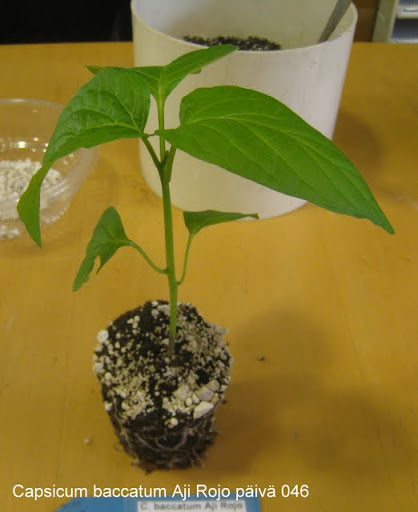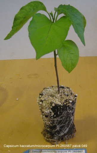 C. annuum Ancho Poblano oli kasvattanut juuristoa näkyviin pikarin pohjasta vaikka korkeutta ei muuten ollut erikoisemmin.