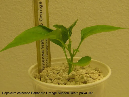 Testasin latvomista muutamalle jo maanantaina ja C. chinense Habanero Orange Sudden Death teki viidessä päivässä noinkin vahvasti uusia verson alkuja lehtihangoista.