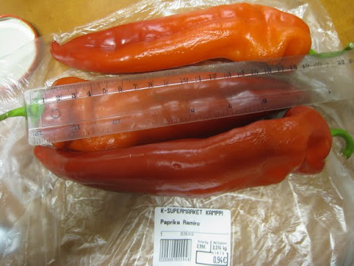 Isoin on C. annuum Paprika Ramiro F1. Päässy yks lehtikin kärähtämään, ja muutenkin ruvennu kasvaan vinoon kun sattu oleen reunimmaisena.