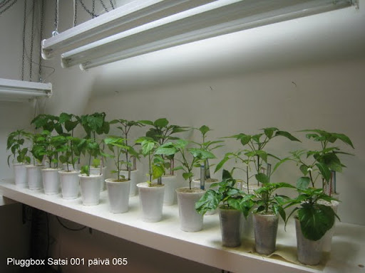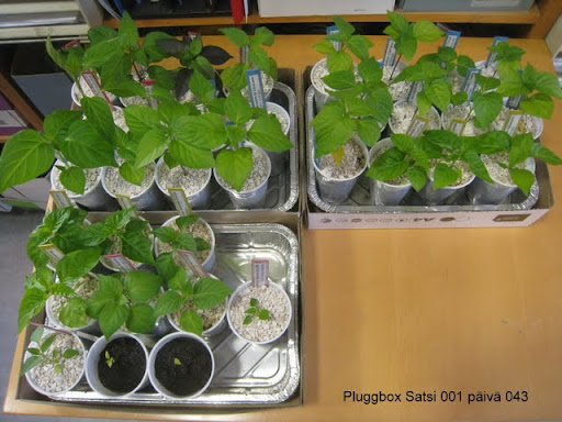 Himskatti jos laskee 2 kasvia ruutua kohti ni hyvin mahtuu, varsinkin kun noi ruudun välit on isomman Pauliinan leveitä. Täytyypä laittaa viel yks 49 reikänen Pluggbox itämään.