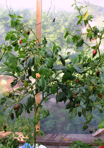 Kotona olevien kasvieni kohdalla pahoin pelkään että peli on menetetty, paitsi ehkä Turbo Pubella, joka on pysynyt neljää syötyä haaraa lukuunottamatta suht terveen näköisenä. Ei tosin ole kasvanutkaan, mutta se menetti reilun neljänneksen lehvästöstään ja kypsyttelee kahta terveen oloista podia 3-4-litraisessa ruukussa. Ei taida olla vaivan arvoista leikata jotain Aji Amarilloa 10-senttiseksi tapiksi tähän aikaan vuodesta... Ennemmin ottaa ruukun vaikka Rocotolle tai pajan pikku Baccoille käyttöön.