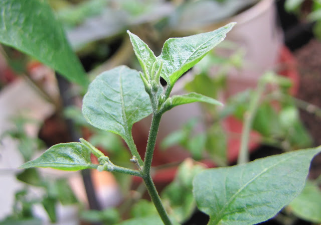 Sitten viimeiseksi kuva Capsicum lanceolatumista, joka on jo hiukan saanut kasvuakin aikaiseksi. Nyt kasvilla korkeutta n. 30 cm