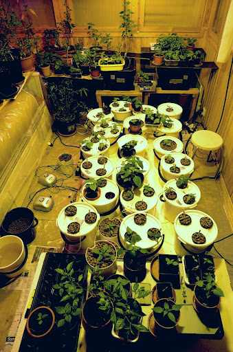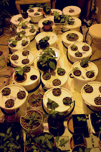 Eihän tuo oikeastaan alkuvaiheessa ole huonokaan idea, kolme kasvia/pytty. Hyvän alunhan ne ainakin siinä saa. Itse olin sen verran laiska, että en viitsinyt kairata, kuin yhden reiän per pytty. Onneksi tuli ph- ja ec-mittaritkin näköjään tänään, niin pääsee testailemaan noita lanta-arvoja tarkemmin, eikä mututuntumalla tehtyä.