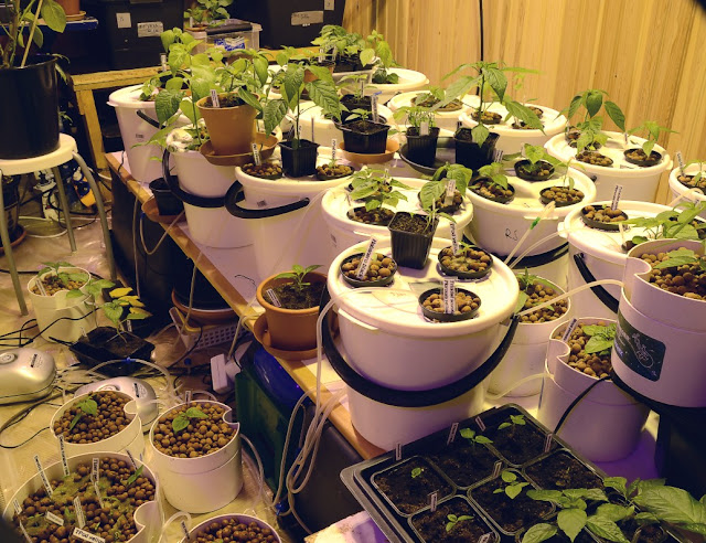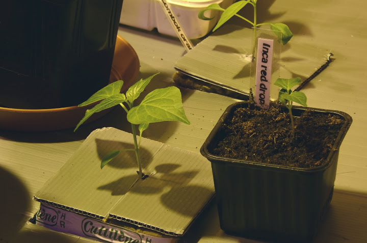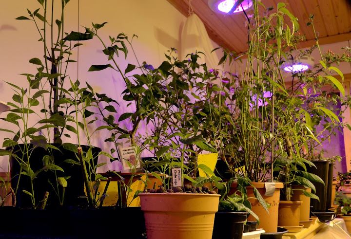 Oli hilkulla jonkimoinen haaveri. Kannoin farmille kasvatushuoneeseen pahvilaatikossa autolta taimia kun pimeässä kompastuin lumivalliin. No lootat tietysti lensivät parin metrin päähän voileipäefektillä, siis taimet ylösalaisin. Tuhoa tutkiessani helpotus oli suuri kun ei ollut kuin 5 tainta mennyt poikki. Yksi oli Tobago sweet mutta kun kahdesta toinen oli kypäräpäinen ja selvinnyt taimi hyvässä kasvussa oleva niin säikähdyksellä selvittiin. Poikkimenneet olivat varataimia. Loota jossa oli kivivillakuutioissa pikkutaimia ei saanut minkäänlaisia vammoja. Niettä valot ensin päälle niin näkee jotain.