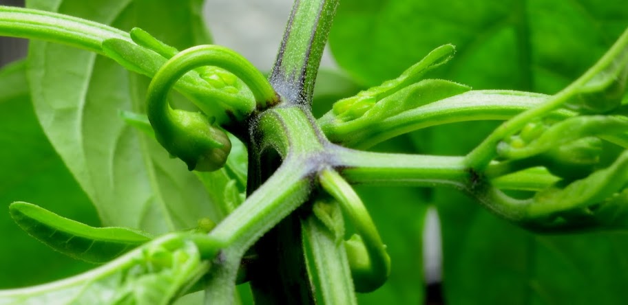 Kompuroinnista kärsinyt Peruvian white habanero. Ei ihan poikki mutta lievästi kärsinyt. Mulato tuli latvottua (ei kuvassa).