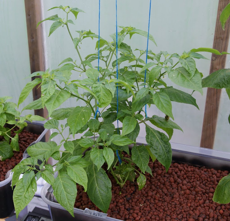 Poblano ei ilmeisesti tykännyt olla muiden varjossa bubblerissa eikä kokoa tullut. Ei tuo ihan toivoton ole, mutta mullassa kasvava kaveri tekee podeja vaikkei sekään ole iso.