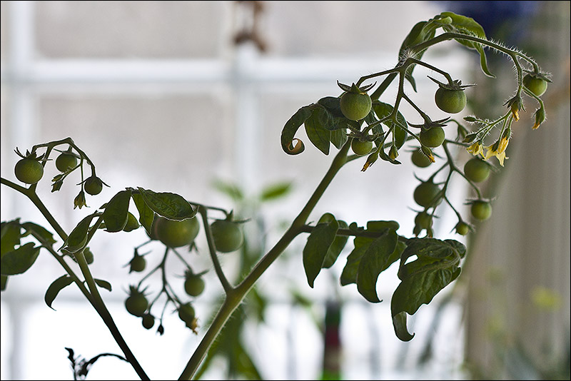 Ihan ei kyllä tullut sitä mitä siemenpussissa luvattiin. Tuota kehuttiin äärimmäisen kääpiöiväksi ja maailman pienimmäksi tomaattilajikkeeksi joka kasvaa 10-15cm korkeaksi, tällä hetkellä tuolla on korkeutta 45cm. Raakileita siinä on kyllä joka tertussa ja niitä on paljon. Ehkä tässä päästään vielä tomaatin makuun ennenkuin ulkokausi edes alkaa, ei noiden hedelmien juuri tuota suuremmiksi pitäisi kasvaakaan. Tosin näkee nyt sitten mitä tuostakin tulee.